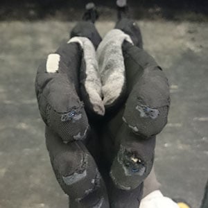 Boots. I tried to break 'em in. It felt like they were breaking in my ankles. My EVO's are heavy, and they have a super stiff shank (sole.) It's completely rigid. When I'm kicking into the wall with crampons for a foot hold, I don't want them wiggling or shifting under my foot. These were rock solid. Walking in this Boston winter gave me the opportunity to get used to them.