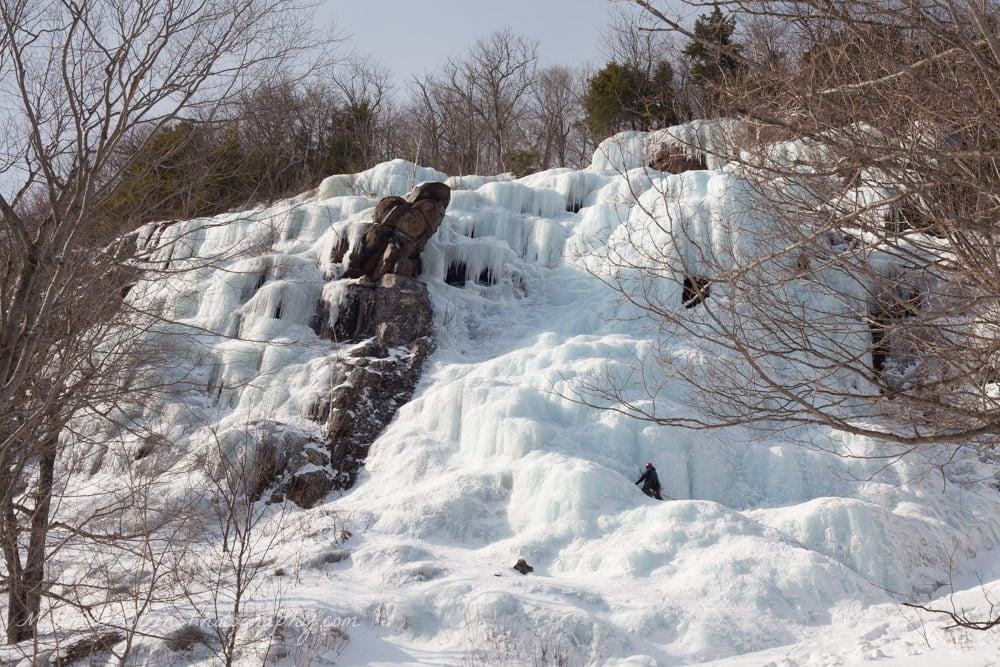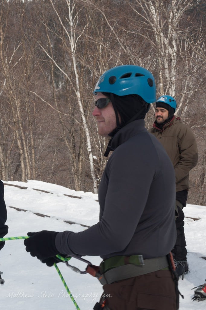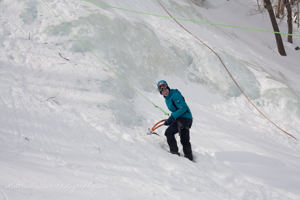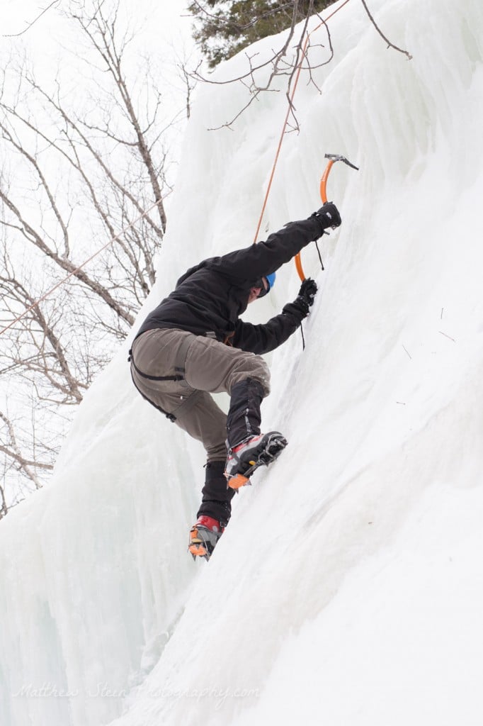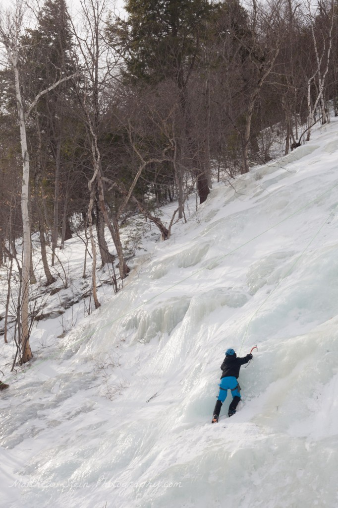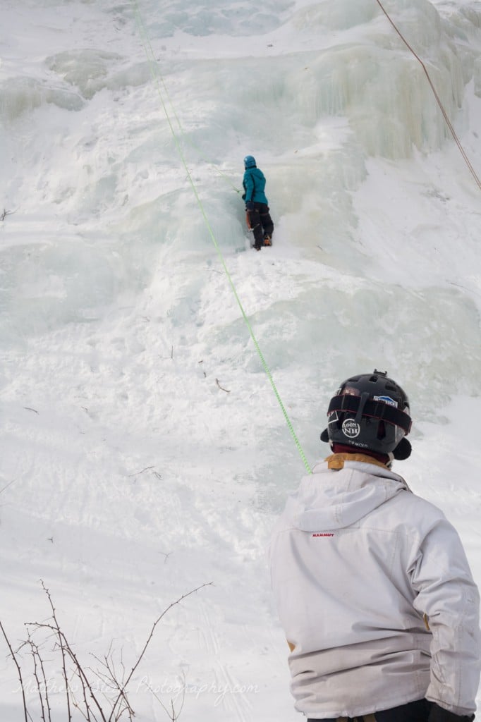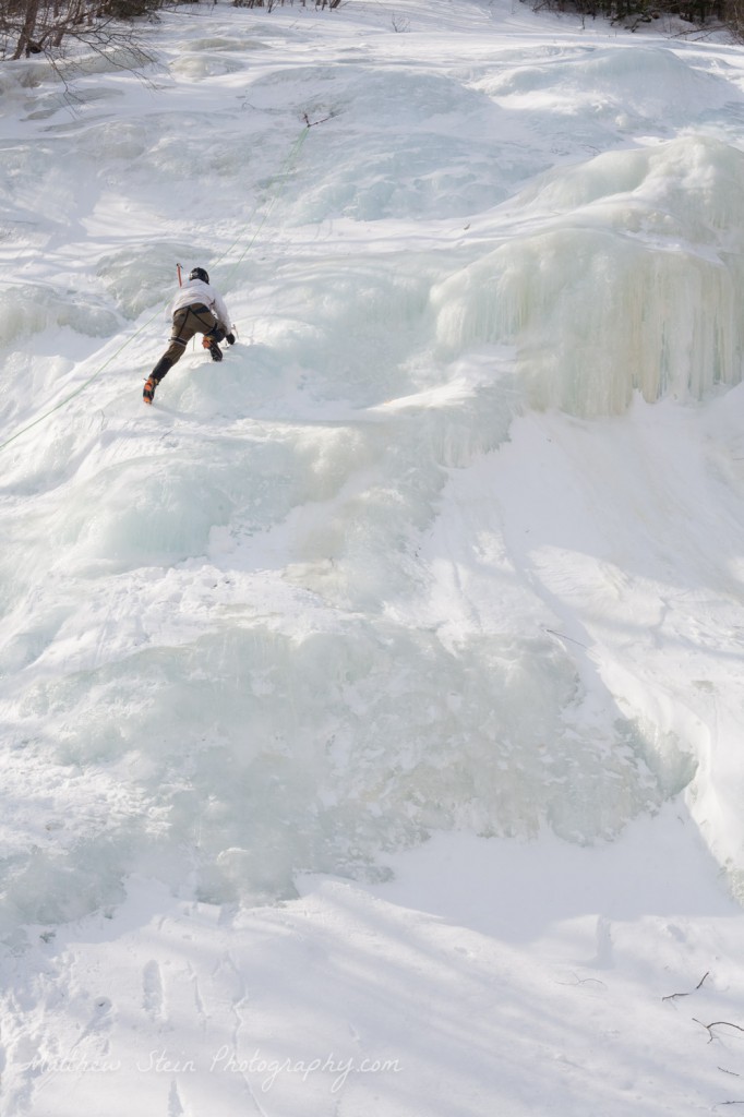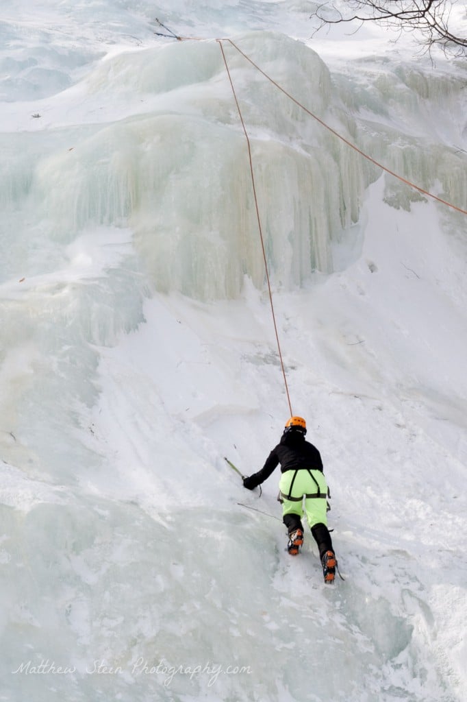 The real dramatic shots are when a climber is leading and above their protection. We didn't do any leading this time. For most of us it was our first or second time on ice, so we top roped everything. We set up two ropes for the day. In the afternoon I shot from one, while our group climbed the other. If it doesn't look very steep, try it sometime.